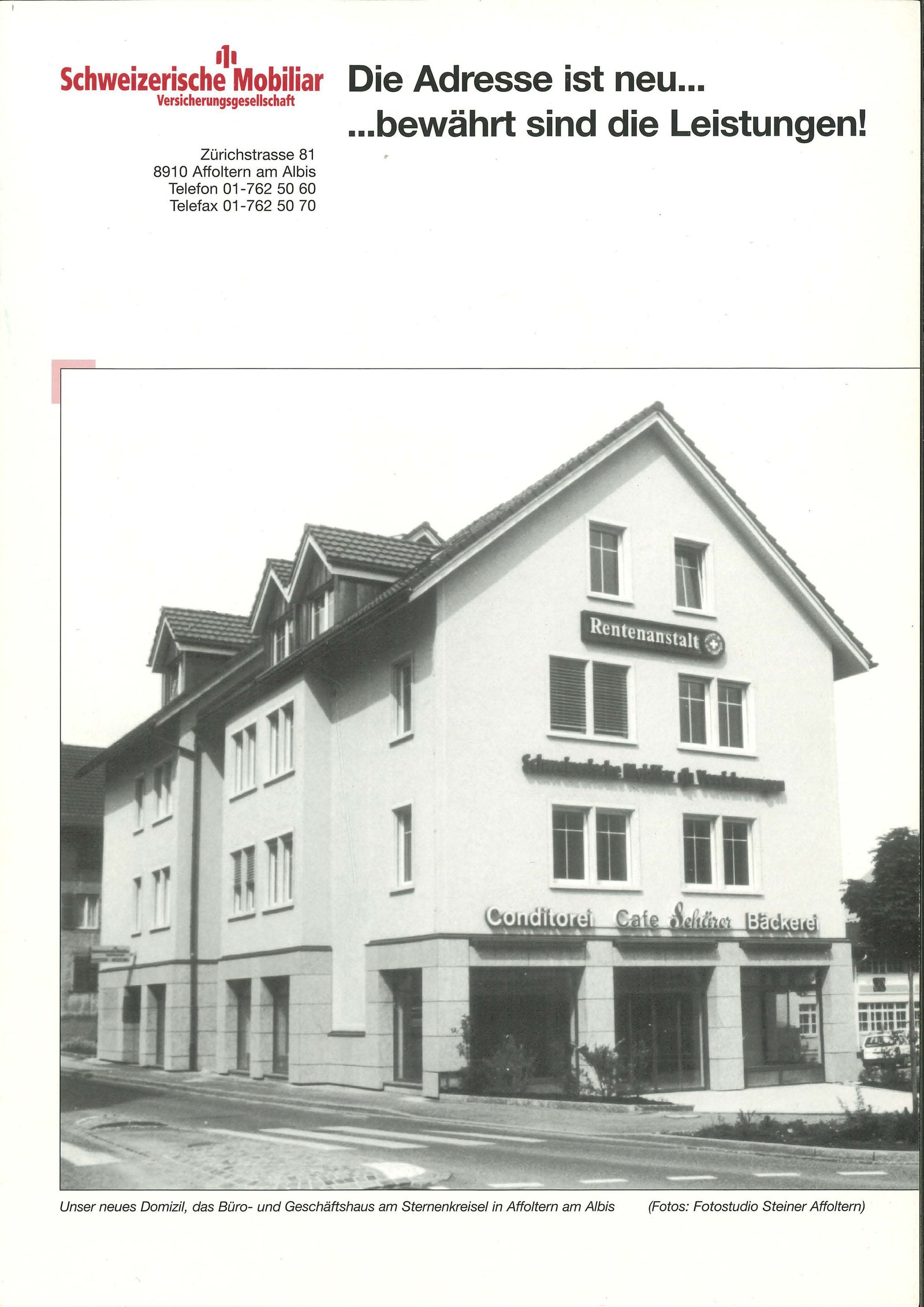 Die Nähe zu den Versicherten gehört seit der Gründung 1826 zur DNA der Mobiliar. Besonders dann, wenn ein Schaden passiert, sind kurze Wege wichtig. Auch im Knonaueramt ist die Mobiliar schon früh präsent.