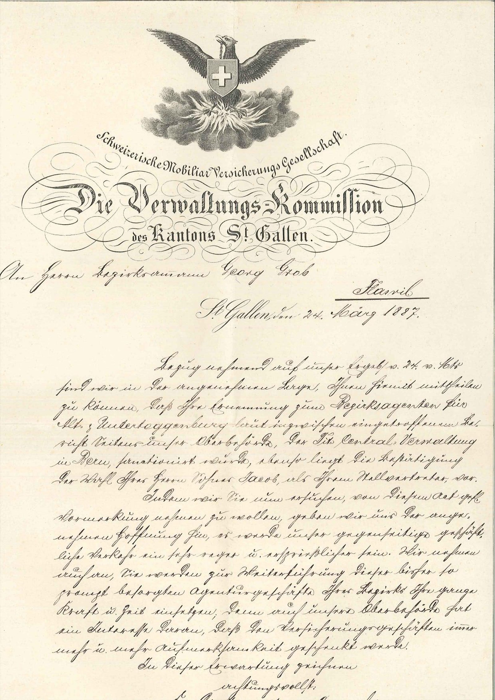 Schon 1834 war die Mobiliar in der Region mit Agenten präsent. 1834 tauchen in den Quellen erstmals Ortsnamen aus der Region Flawil auf.