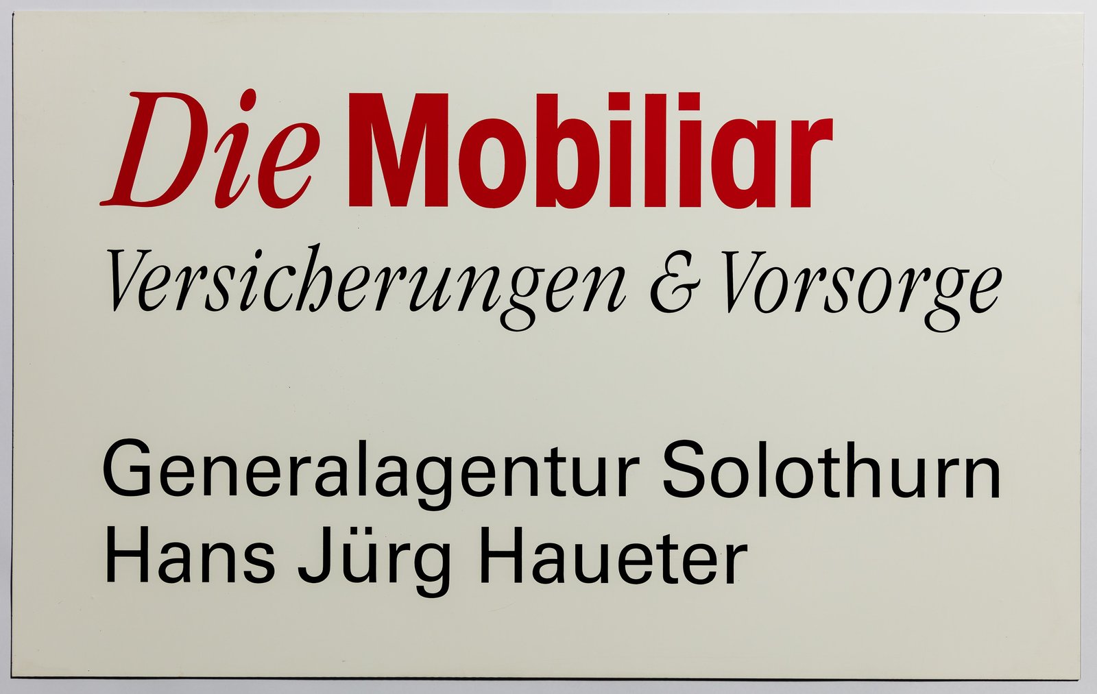 Solothurn als Standort der Mobiliar ist schon für das Gründungsjahr 1826 dokumentiert mit dem Namen des Agenten Carl Vogelsang.