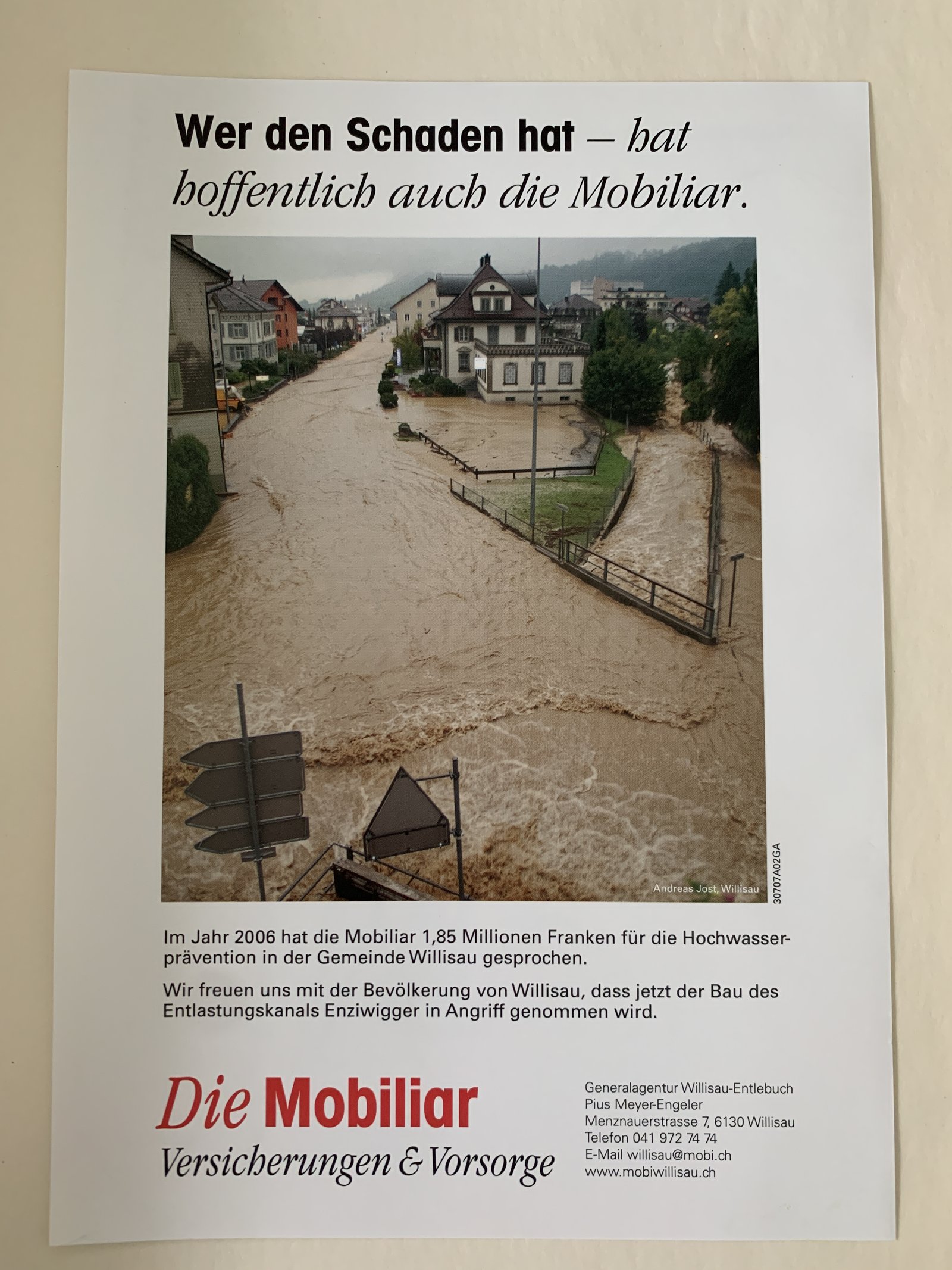 Ein Unwetter sorgt im Jahr 2005 für enorme Schäden in Willisau. Die Wassermassen richten grosse Zerstörung an. Die Gemeinde setzt im Anschluss daran ein Hochwasserschutzprojekt um, an dem sich die Mobiliar mit rund 1.8 Mio. Franken beteiligt.