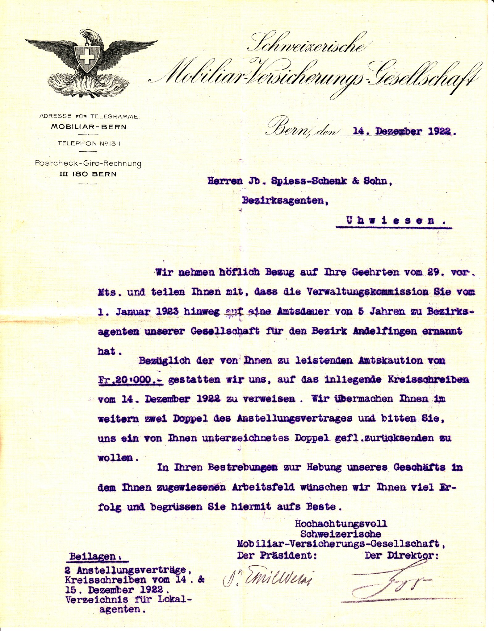 von 1928-1932 war er mit J. Haeberli zusammen Generalagent für die Bezirke Winterthur und Andelfingen