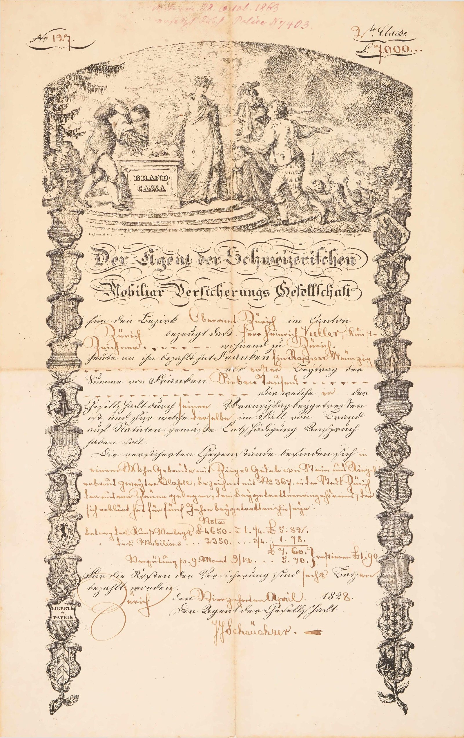 Der Standort Zürich ist in den Akten der Mobiliar schon im Jahr 1826/1827 erwähnt. Der erste namentlich bekannte Agent hiess Scheuchzer. Er erhielt für seine ausserordentlichen Leistungen die Verdienstmedaille der Mobiliar.