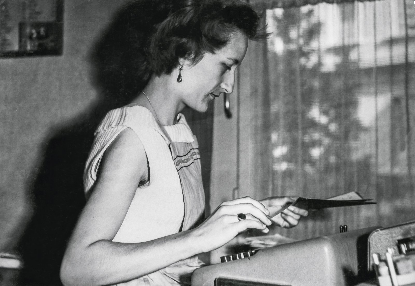 1957: Liselotte Kläfiger hat ihre Traumstelle gefunden: Datatypistin in der Lochkartenabteilung.