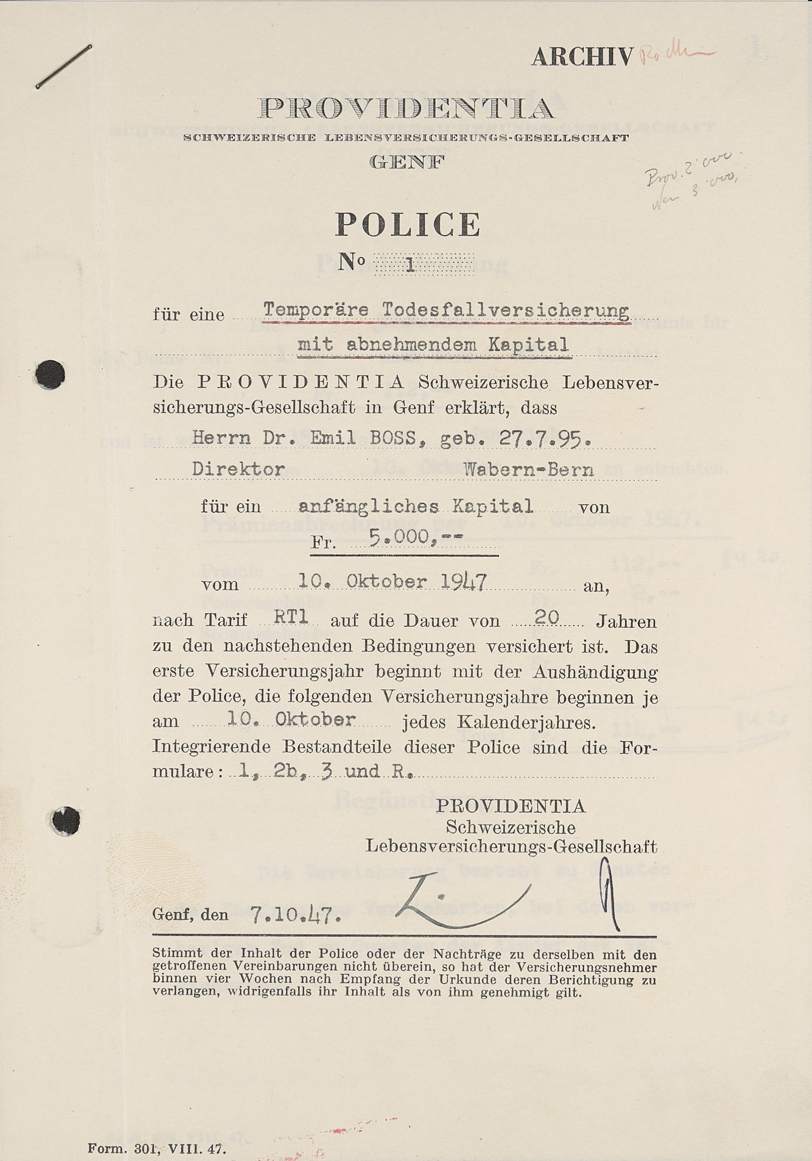 1946: Die Providentia setzte als erste auf Risiko-Lebensversicherungen – und ist damit bis heute unter dem Dach der Mobiliar erfolgreich.