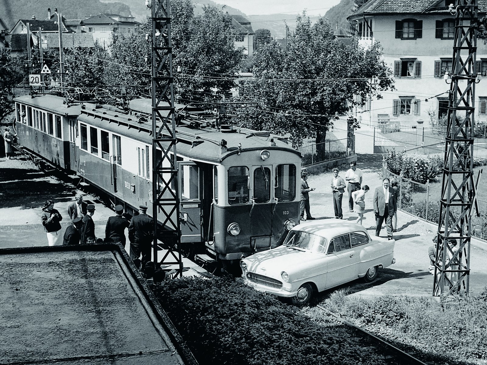 Das erste Autobahnteilstück der Schweiz wird eingeweiht.