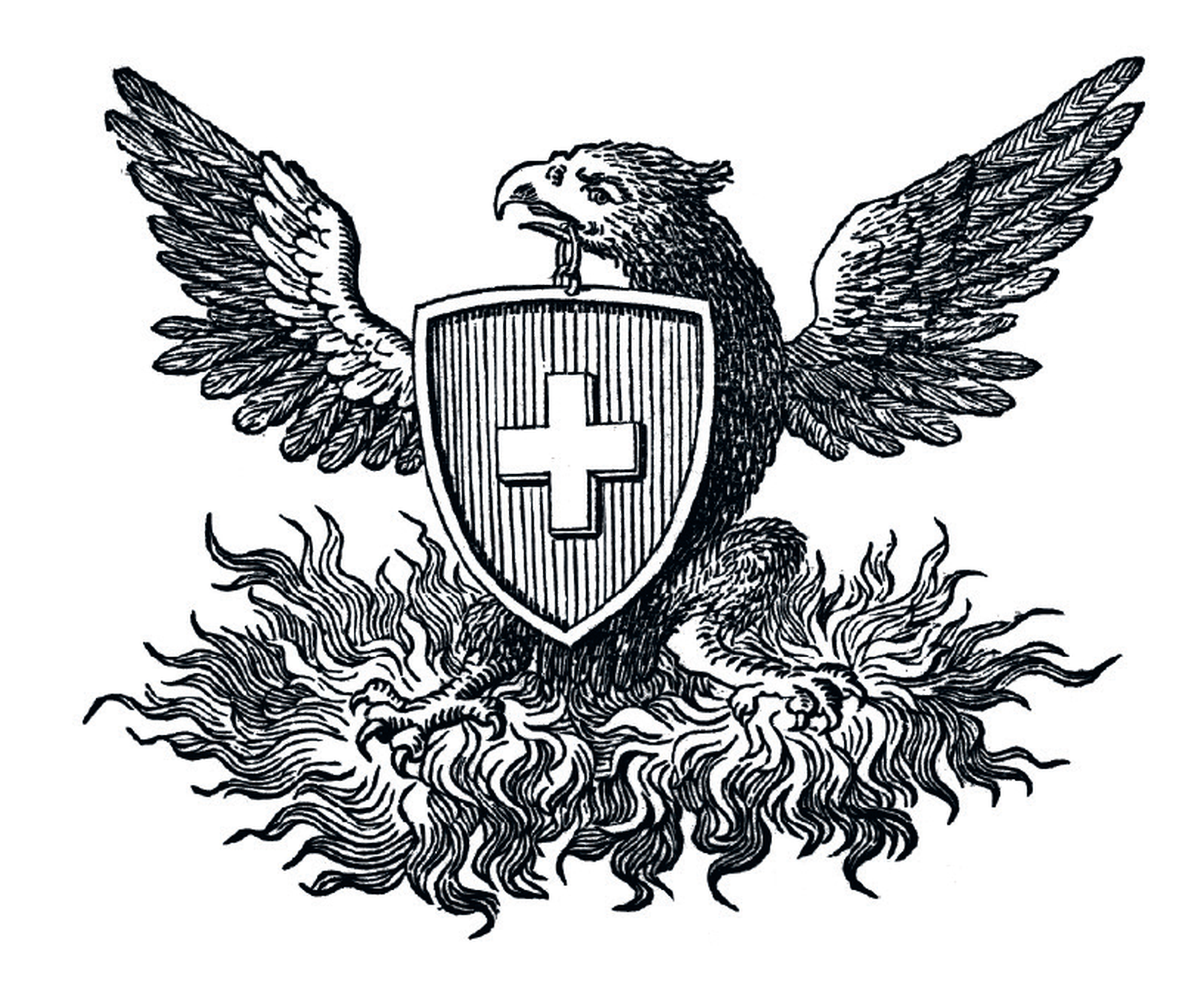 Erstes Signet der Mobiliar, womöglich von der Feuerversicherung Le Phénix inspiriert: der Phönix, der aus der Asche steigt. Symbol für den Neuanfang nach der Zerstörung.